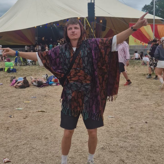 Our fleece ponchos are made in India from recycled acrylic into square cut ponchos with a front pouch pocket and a round hood. They come in free size in many colour ways but same butterfly pattern. If you require a specific colour tone please specify at check out and we will do out best to accommodate the request. Suitable for anyone size S - 4XL or 10 - 26. They measure 42" (107cm) across and 33" (84cm) shoulder to bottom hem.