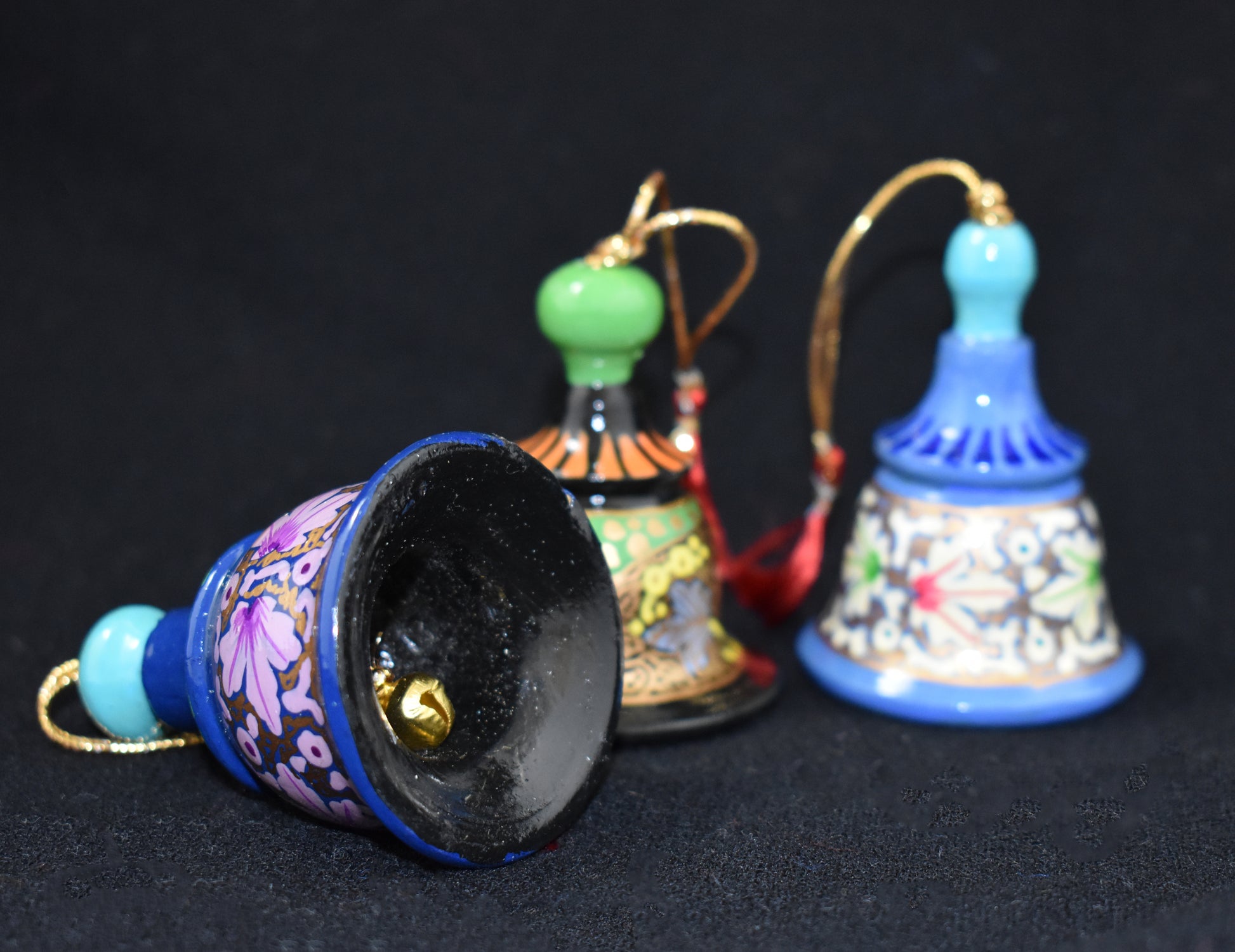 Hundreds in stock. Each bell measures around 6 cm in height and comes with a gold and red hanging string.
