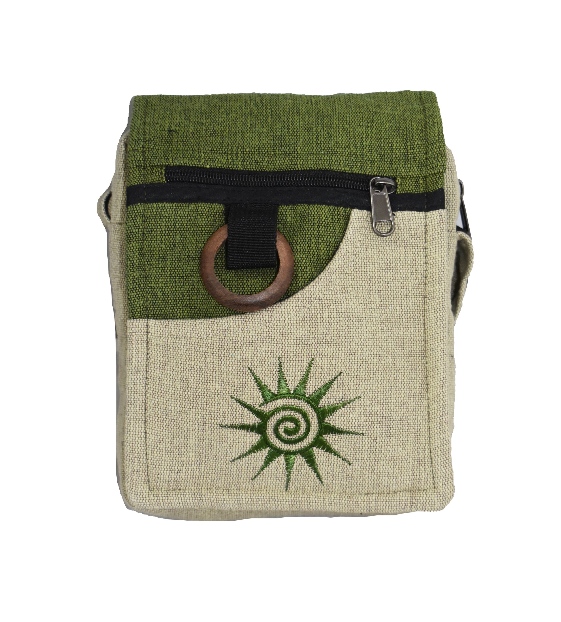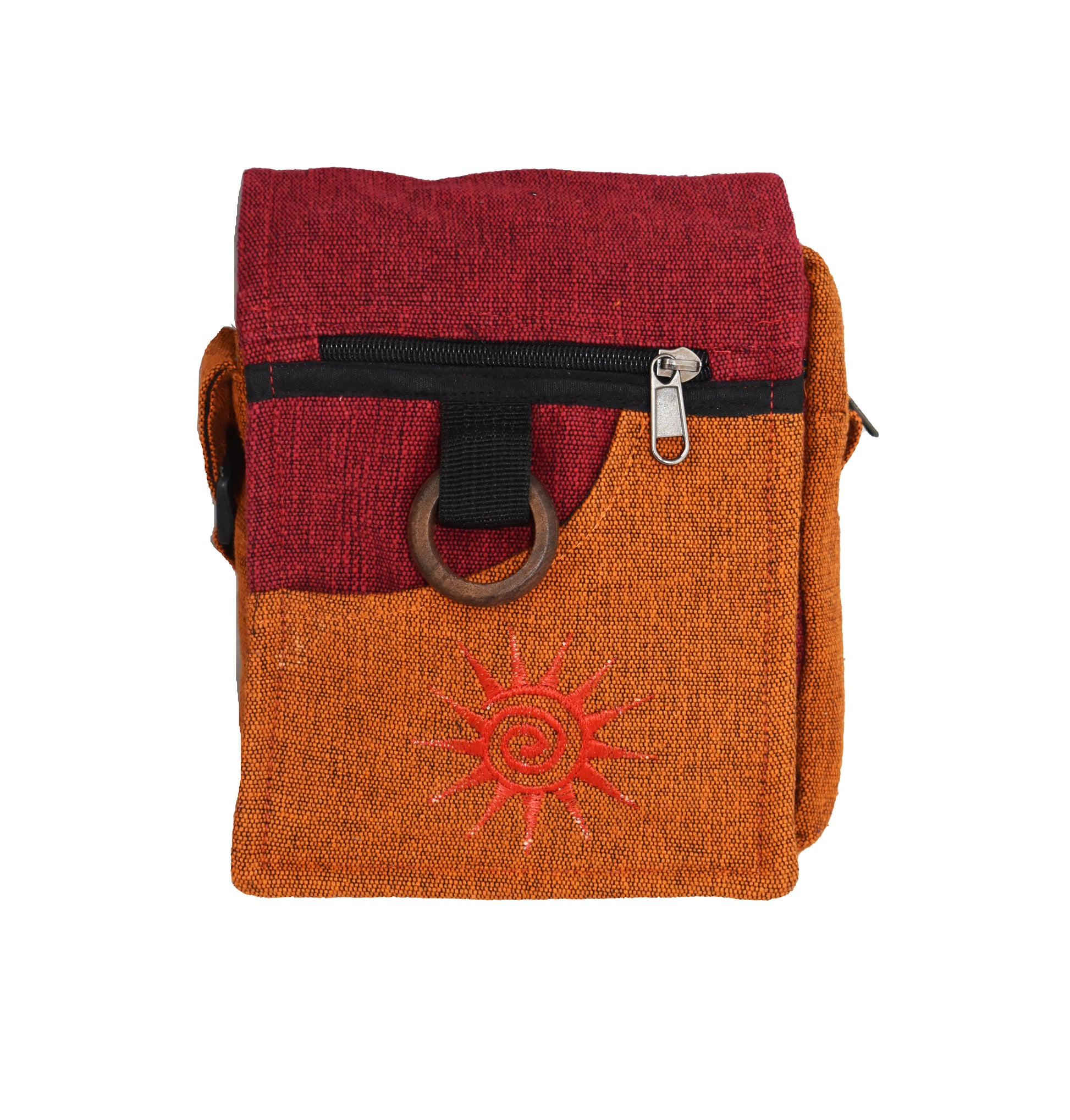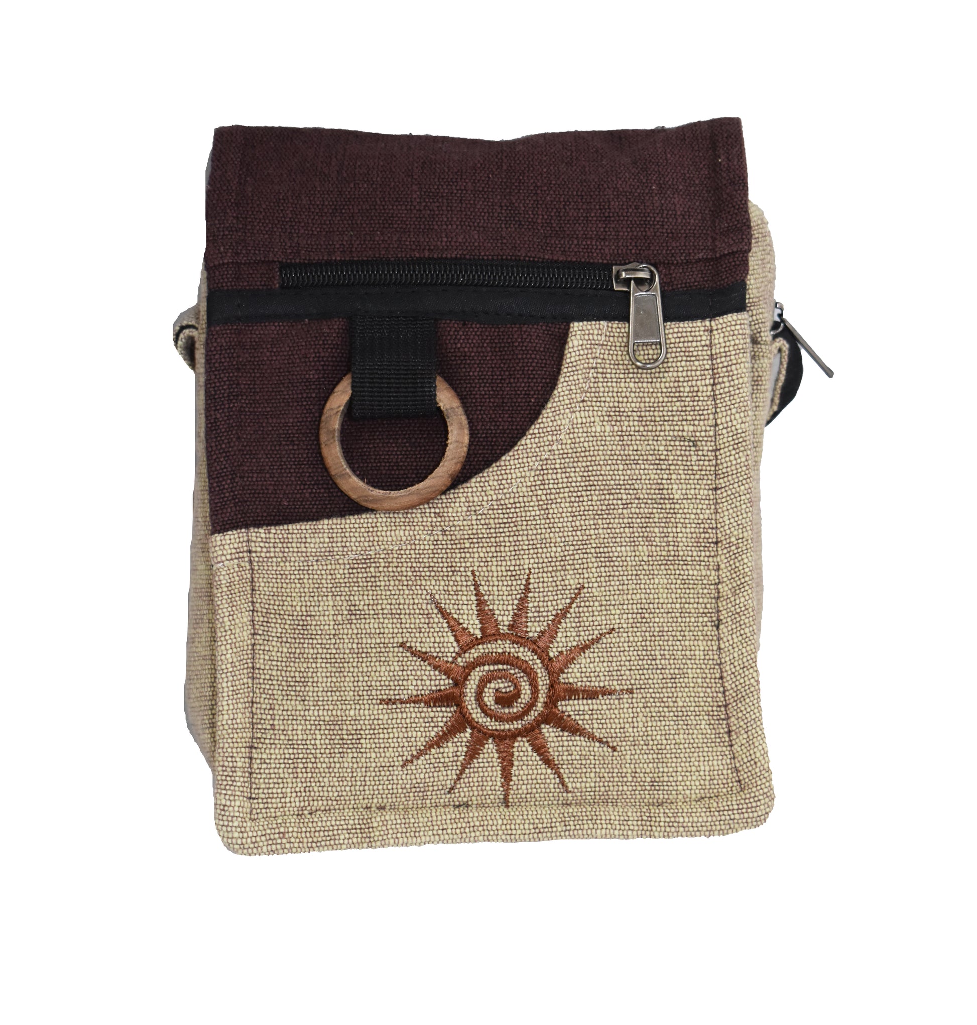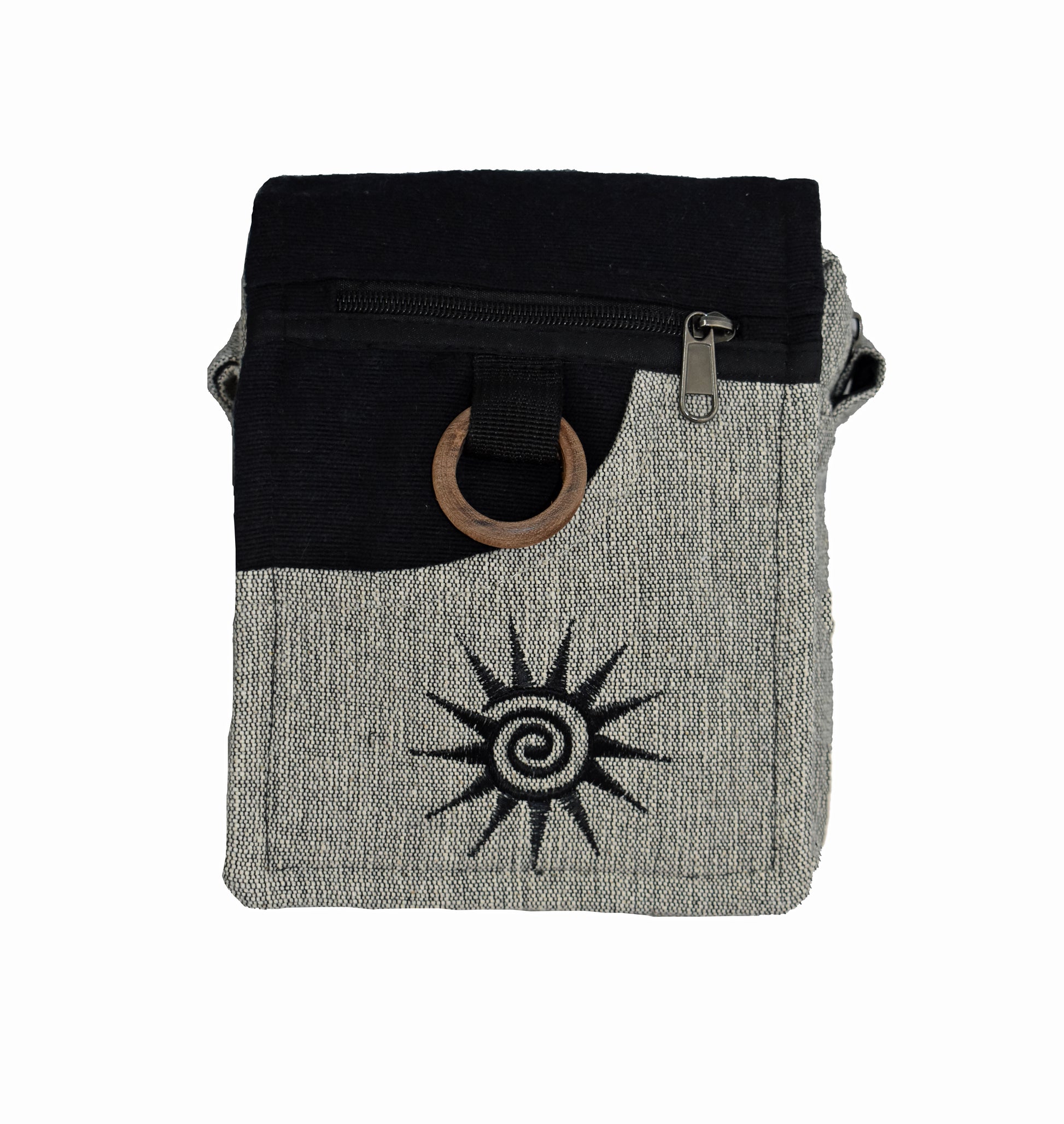 Elevate your look with these stunning woven cotton shoulder bags. Featuring a striking two-tone design, it boasts an intricate embroidered sun pattern on the front flap and a chic wooden key loop for that perfect finishing touch. The main compartment is lined with black cotton and zips shut for security, while two additional zip pockets keep your essentials organised and within reach. The adjustable strap ensures a perfect fit for ultimate comfort on one shoulder or across the body. Built to last, this bag is the perfect blend of style and function.