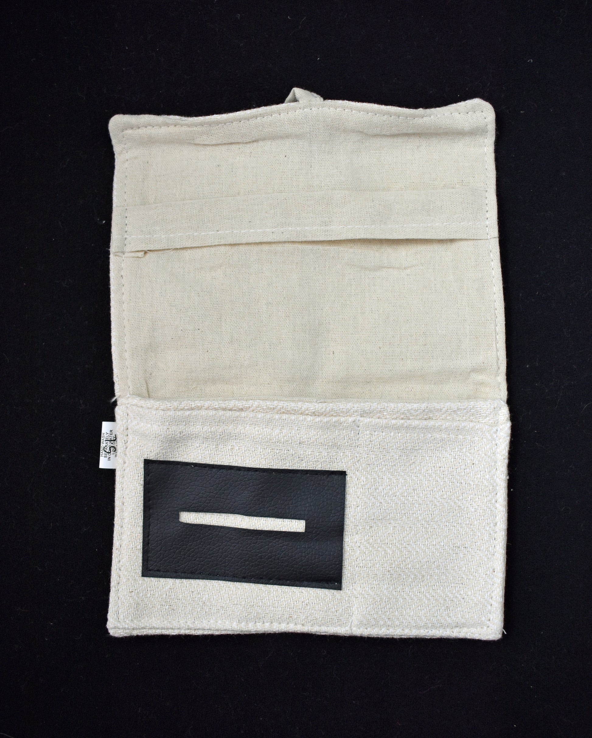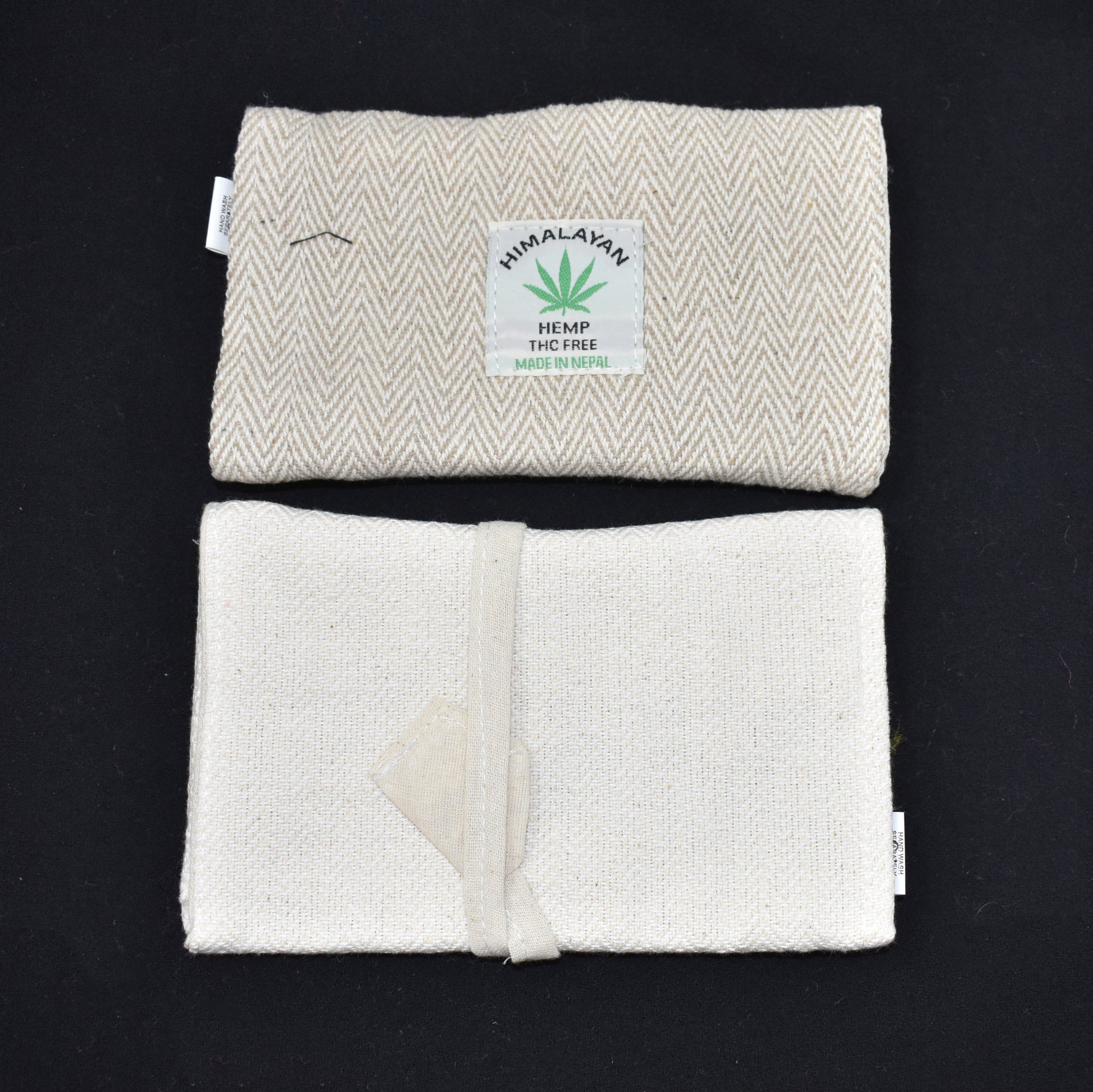 These ever popular tobacco pouches have been made in Nepal from woven hemp and cotton. They do up by wrapping the fabric ribbon around the pouch and tucking it in. Made to fit most sizes of tobacco packet but please check measurements below if unsure. Cold machine wash or hand wash then line dry. They have a small pocket for a lighter and a slip pocket with opening for standard size papers.